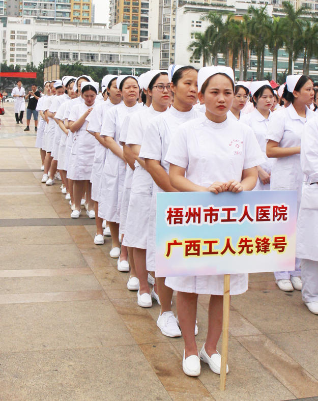 4月10日上午,梧州市工人医院工会组织20余名医务人员参加市总工会举办的“楷模风采 榜样力量”启动仪式,并在市政府广场开免费义诊,为群众提供健康咨询服务。