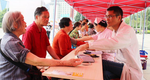 (图为市工人医院义诊团队正在给市民解答疑惑)