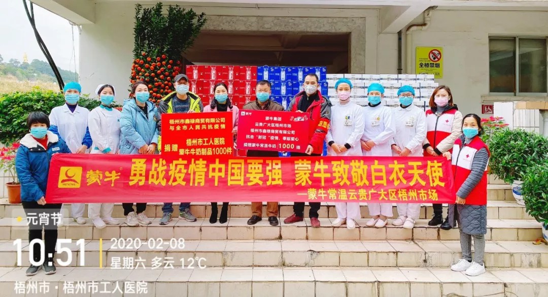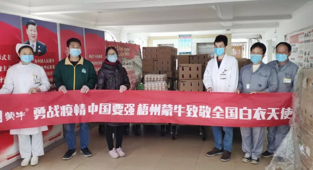 (2月8日,梧州市鑫禄商贸有限公司捐赠1000件牛奶)