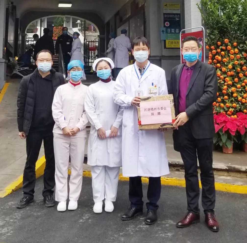 (2月6日,民进梧州市委会捐赠300个一次性医用口罩)