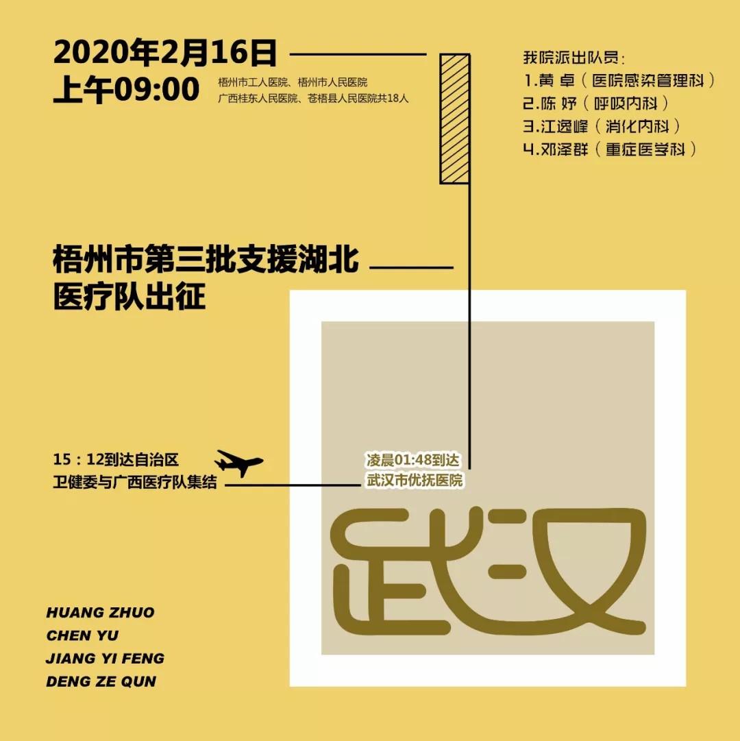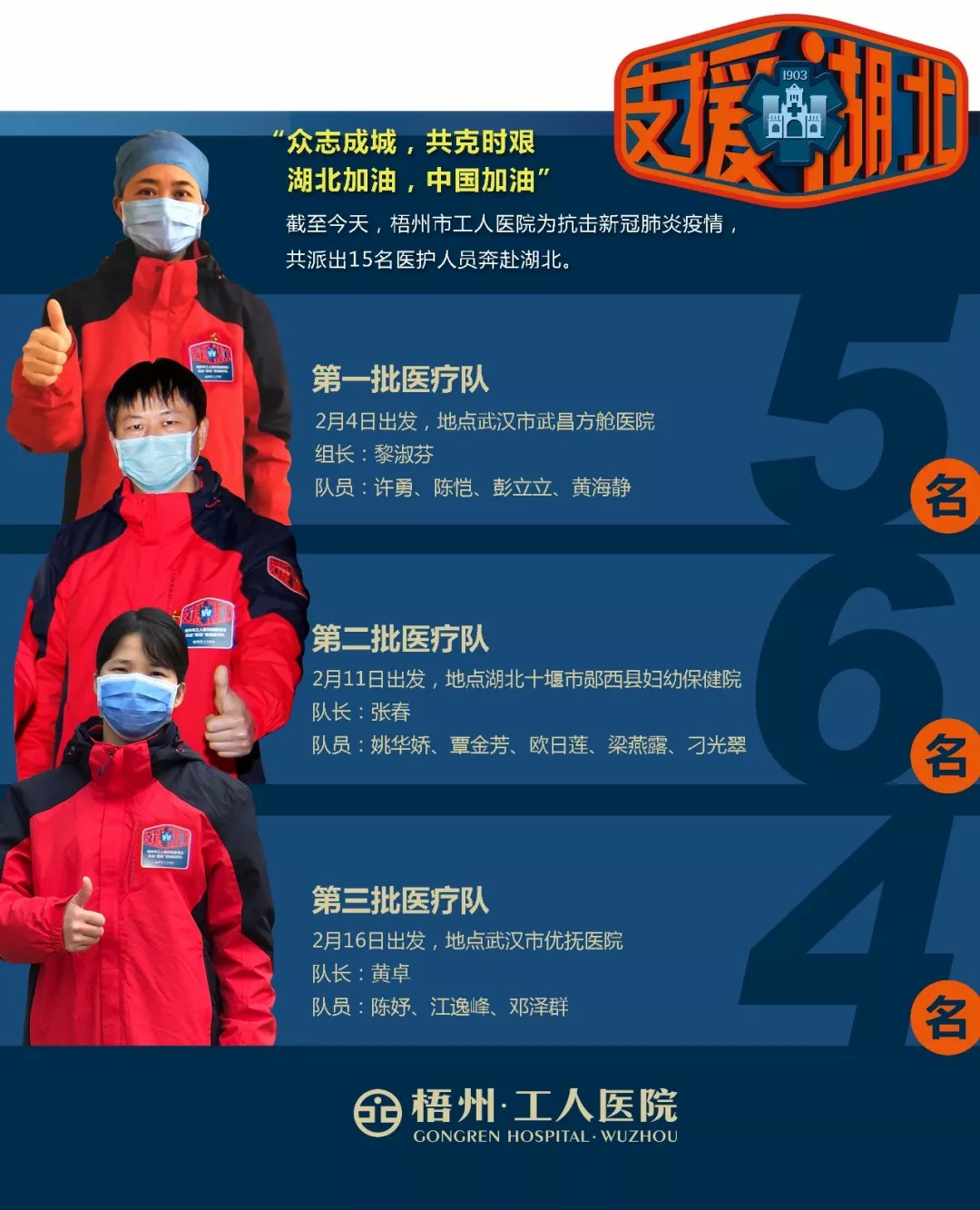 2月16日上午9时许,来自梧州市工人医院的4名主治医师与市内其他医院的14名医护人员组建梧州市第三批支援湖北医疗队,前往南宁集中乘坐包机奔赴武汉。截至当天,市工人医院15名医护人员加入了梧州市三批次支援湖北医疗队,目前均已在湖北一线开展疫情救治工作。