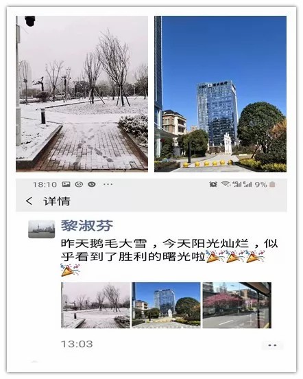 2月16日,湖北武昌万里无云、阳光明媚,期待许久的曙光照进了每个人的心田,值守方舱一线的首批医疗队组长黎淑芬忍不住发了一条朋友圈,温暖的阳光给庄严肃穆的大地带来复苏的希望。