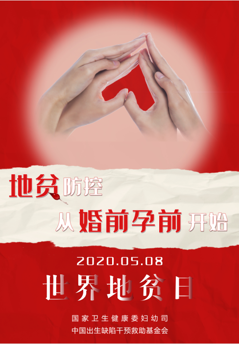 2020年5月8日是第27个世界地贫日,今年的活动主题为地贫防控,从婚前孕前开始。