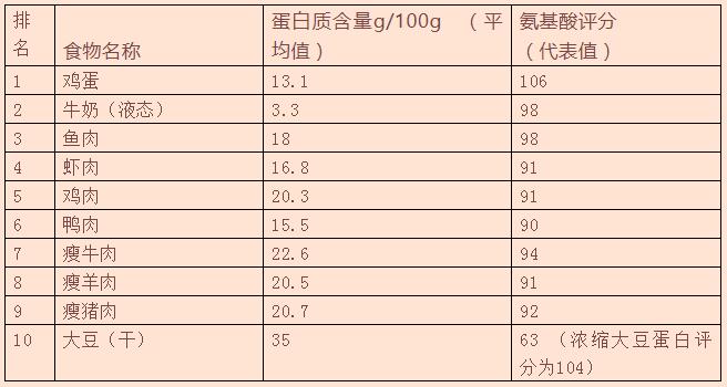 优质蛋白质十佳食物相关数据