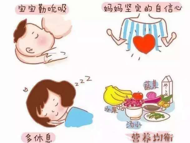 要想乳汁分泌旺盛并营养成分优良,妈咪的热能及营养素的需要也相对增加,所以每日应多吃几餐,以4~5餐较为适合;要特别注意多喝一些能催乳的汤类,如炖排骨汤、炖鸡汤、炖猪蹄、豆腐汤、青菜汤等;在两餐之间最好饮水或其他饮料。如果少奶或无奶,千万不要轻易放弃,不妨请医生推荐一些催乳特餐或药膳。但并非进食得越多就越好,因为在坐月子时卧床时间多而活动减少,而摄入的却主要是高热量或肥甘的食物。如果摄入太多,不仅不能增加泌乳量,反而因造成胃肠不适而使乳汁减少。