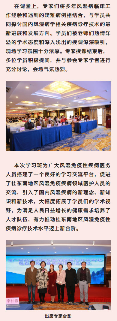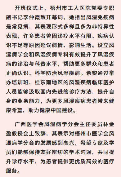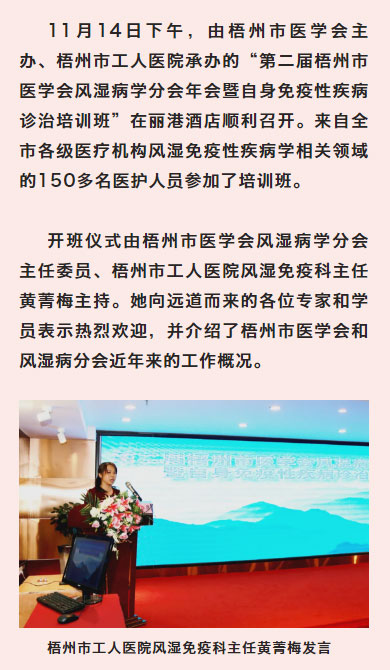 梧州市工人医院成功承办第二届梧州市医学会风湿病学分会年会暨自身免疫性疾病诊治培训班
