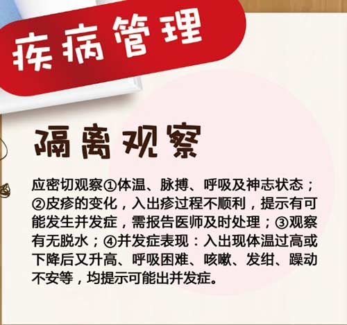 疾病预防:(一)管理传染源:隔离病人至出疹后5天,有并发症者延长至10天。接触者检疫3周,曾接受被动免疫者检疫4周。(二)切断传播途径