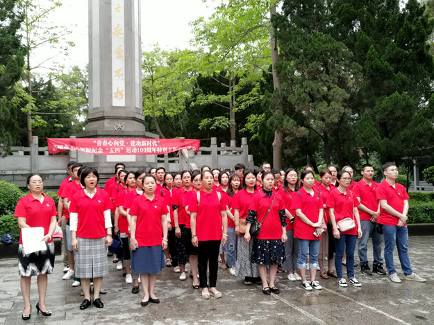 2019年是中华人民共和国成立70周年,是五四运动100周年。4月26日上午,市工人医院党委联合院团委在市珠山烈士墓园纪念碑前开展以青年为主体,“缅怀英雄先烈·弘扬五四精神”主题活动。医院领导、青年党员、青年团员等共50多人参加活动,缅怀英雄,瞻仰先烈。