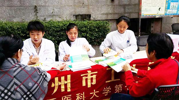 2016年 3月23日下午,阜民病区党支部组织在职党员聂洁萍、高海明、段海娟、容东兰到中山路花圃参加由阜民社区开展的“在职党员进社区集中为民服务月”免费义诊活动。