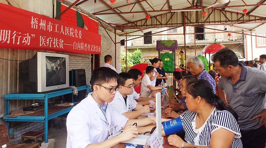 七一前夕,党委书记周淑敏和党委副书记、院长黄志红分别带队到岭脚镇丰田村和新地镇思贤村开展结队帮扶工作,为村民们开展白内障普查、量血压、糖尿病预防等健康宣教,询问征集贫困户“微心愿”5个,为3户贫困户送去慰问金共1500元。