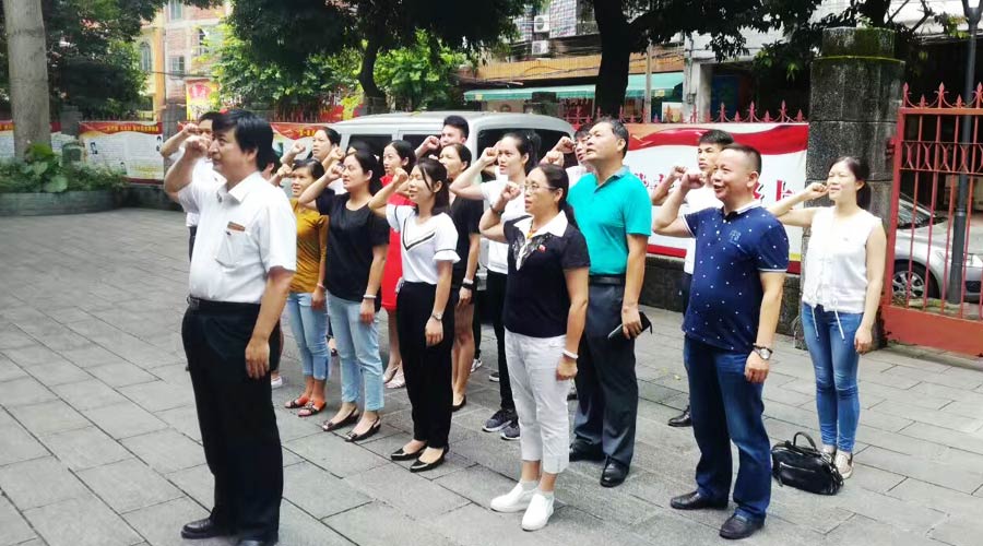 (与爱尔眼科医院党员在广西特委旧址举行重温入党誓词宣誓活动)