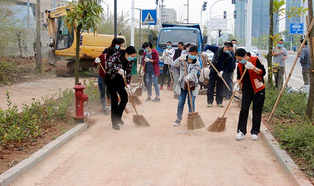 11月3日,我院组织20多名志愿者到三龙大道进行清扫活动,志愿者们利用休息时间,以实际行动为保持梧州干净整洁做贡献。本次志愿服务有院长黄志红、党委书记周淑敏、副院长唐剑、纪委书记曾锦霞等医院中层领导参加。