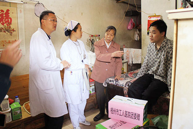 3月5日是学雷锋纪念日,为了倡导雷锋精神,宣传正能量,号召社会大众对重大疾病患者更多的关怀和鼓励。3月3日,梧州市工人医院团委组织医疗志愿者和红十字会志愿者来到白血病康复者陈烨钰和陈雨柠的家中进行回访,了解他们的身体情况以及生活现状,并带去一些慰问品,给予他们鼓励和关怀。