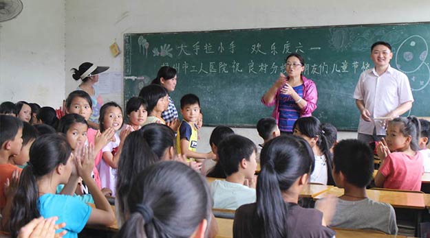 5月31日,为迎接“六一”儿童节,让贫困村的小学生们过一个充实而又快乐的节日,市工人医院组织志愿者来到龙圩区新地镇新浦小学良村分校举行“大手拉小手 欢乐过六一”游园活动。此次活动设计了6个小游戏,让小学生们在游园活动中既获得了多种类的文具,又培养了团结协作的能力,促进孩子们全面健康成长。