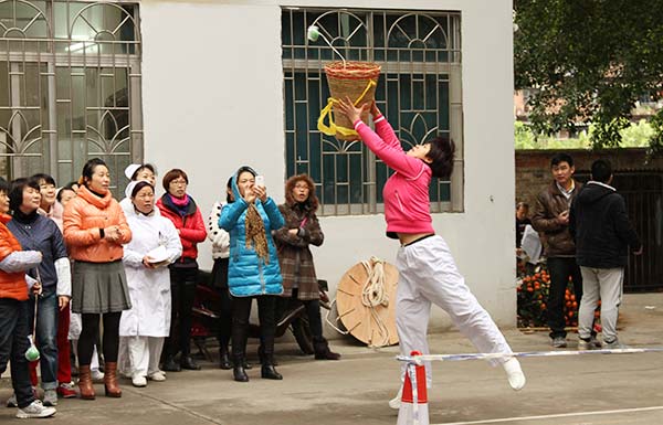 趣味运动会在外科、妇产、药学等12个队伍之间展开角逐,项目有掷球对抗、托盘颠球、掷绣球、夹波珠和指手画脚。活动开没开始,来自各个科室的“运动员”就开始扎堆谈论起了战术,有的拿来道具开始热身练习,有的在旁边观看指点,球场成了欢快的海洋。